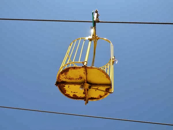 La provincia di Pesaro Urbino in inverno chiude tutte le vie di accesso al monte Catria, così obbliga chi vuol raggiungere le piste da sci a stare circa mezz'ora in aria dentro questo cestello ... naturalmente a pagamento!